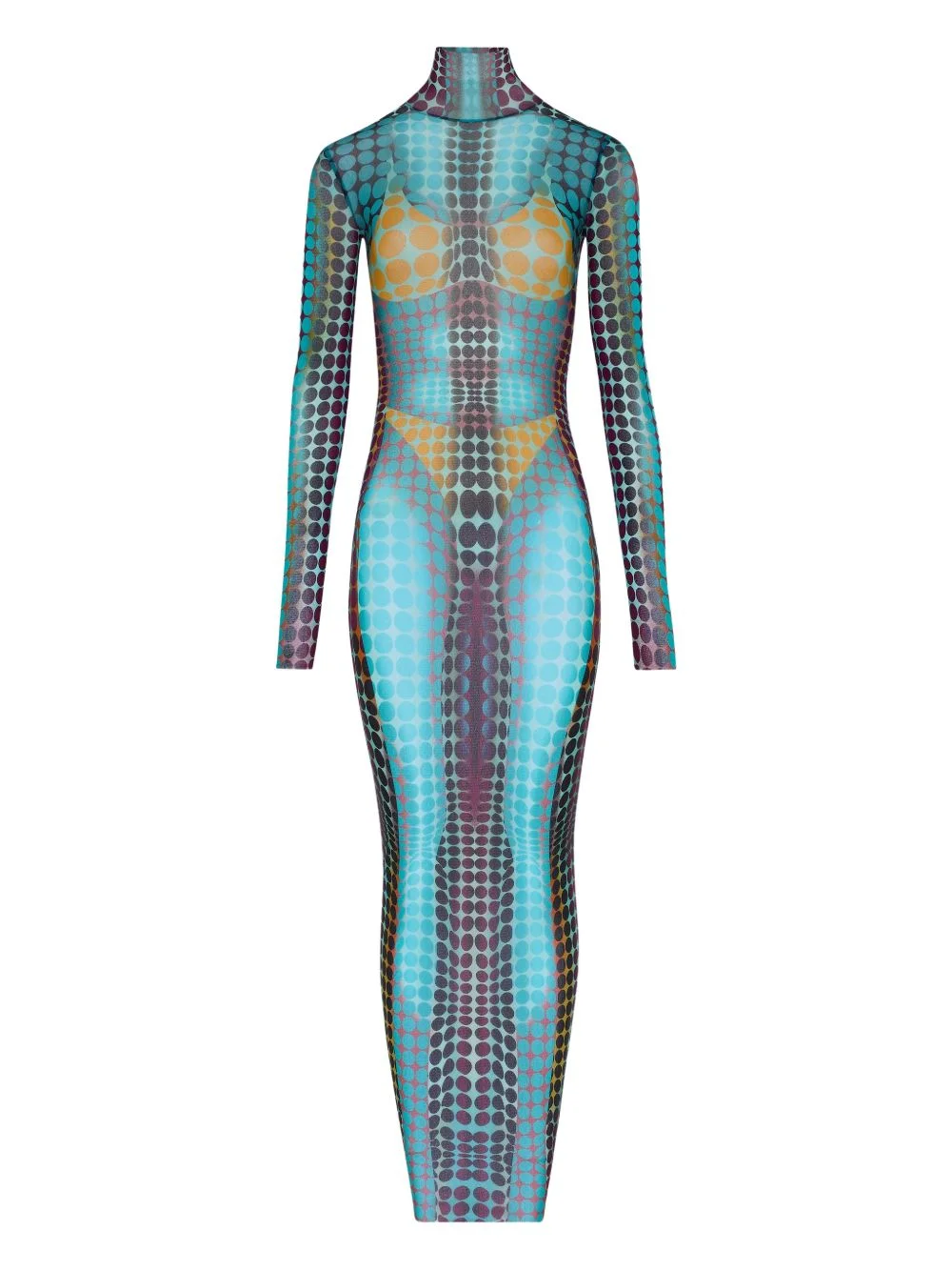 long-sleeve dots maxi dress Highlights - Blue and multicolour - Dots print - High neck - Long sleeves Made in Italy Composition Polyamide 80%, Spandex/Elastane 20% Washing instructions Read Manufacturer Guidelines