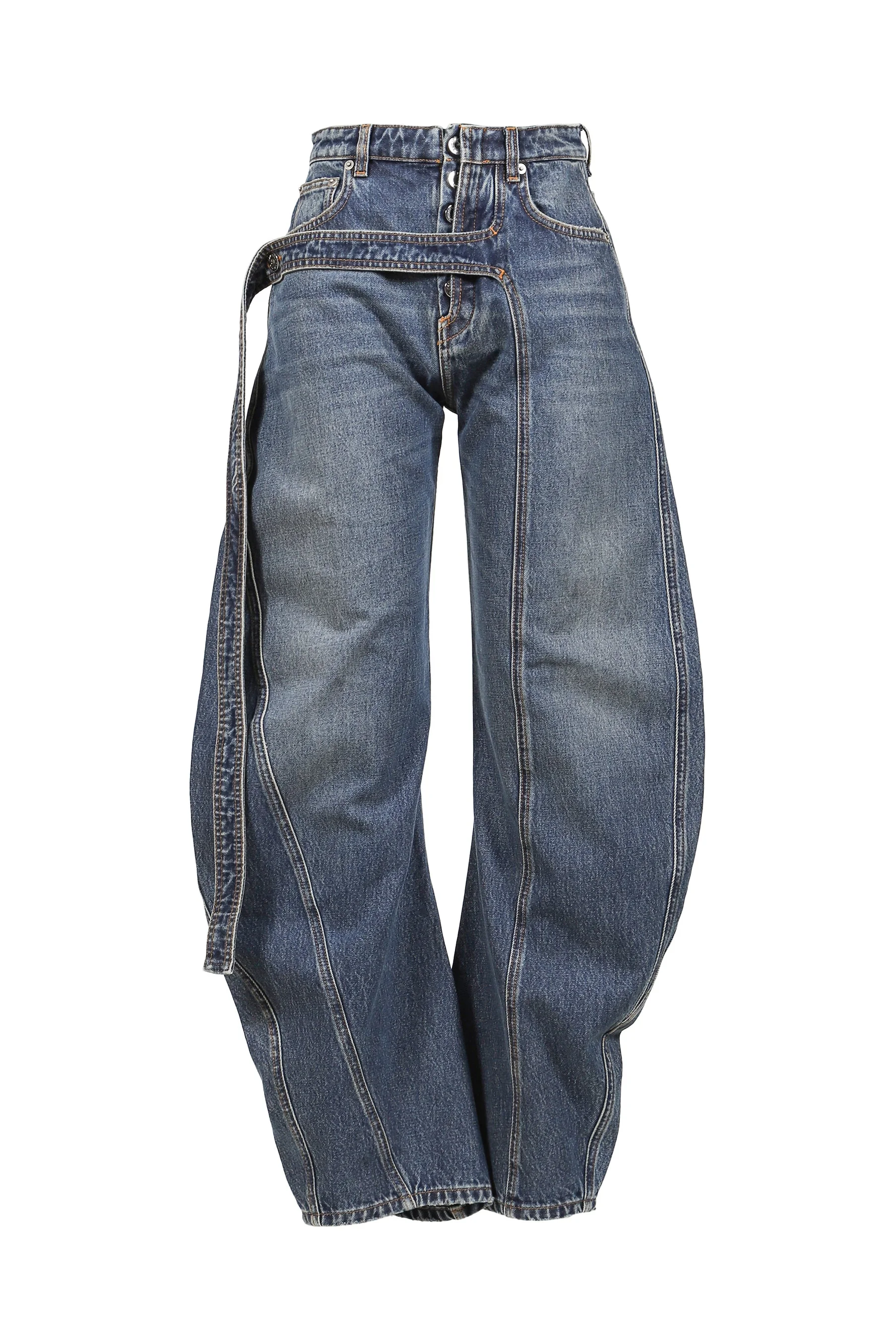 LOW WAISTED JEAN WITH STRAP DETAIL ON THE FRONT / VINTAGEBLU