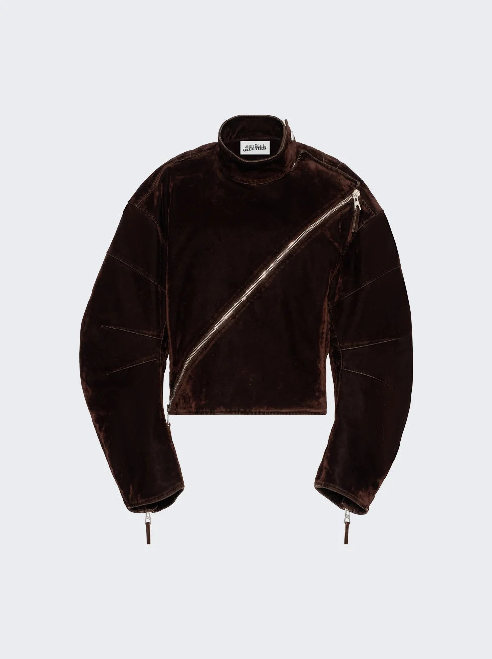 Details - Soft moto jacket with a sculptural fit - Rounded sleeves - Cross-chest zipper closure - Material: Cotton Size Information: Vendor Color Code: Brand Style: 25/03-U-JA007-W010-71 Designer/Brand: JEAN PAUL GAULTIER
