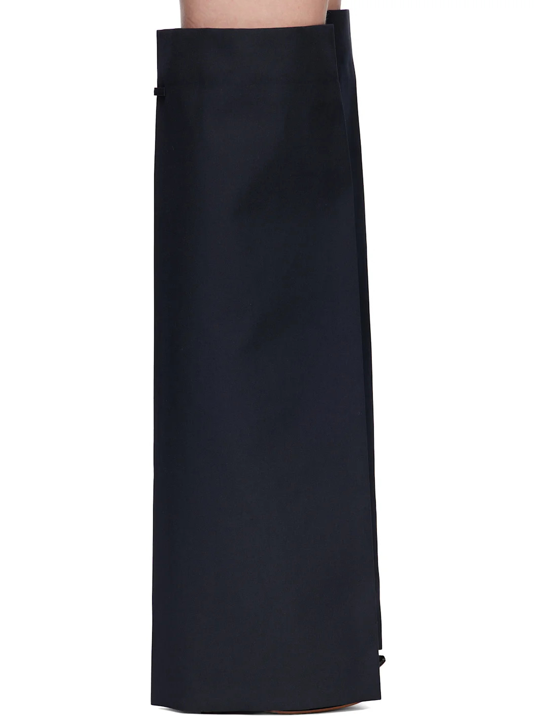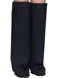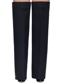 Pair of thigh-high plain-woven gaiters. · Concealed anti-slip elasticized trim at collar · Locker loop at back collar · Logo patch at outer side · Viscose satin lining Supplier color: Navy Body: 77% polyester, 23% wool. Lining: 100% viscose. Made in Italy 252808F076001