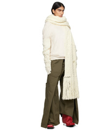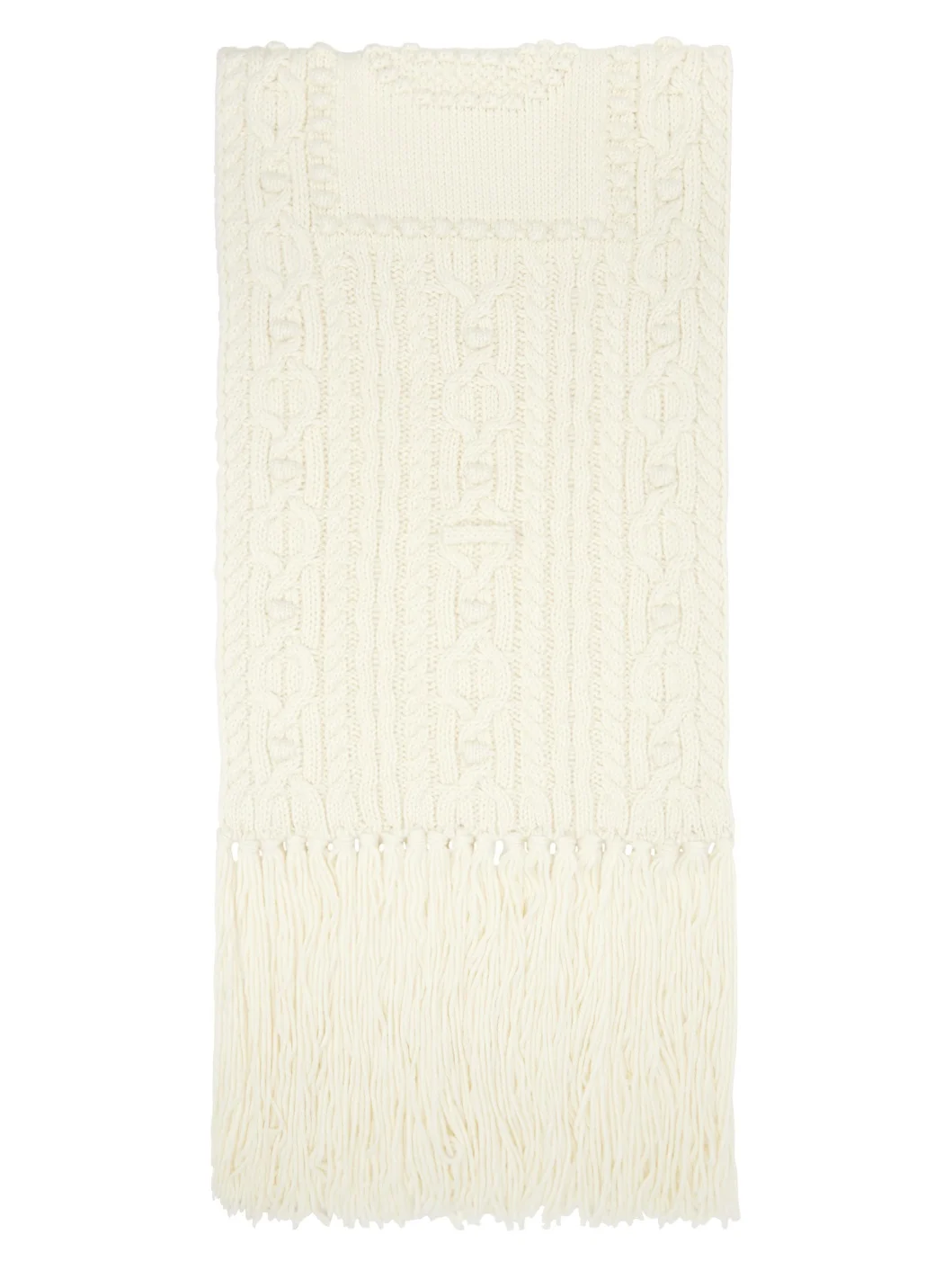 Rectangular cable knit virgin wool- and polyester-blend scarf in off-white. · Logo embroidered at face · Fringed detailing at ends · L104" x W17.5" Supplier color: Cream 50% virgin wool, 50% polyester. Made in Italy 242808F028015