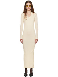 Off-White Ribbed Twisted Double Layer Piercing Midi Dress