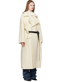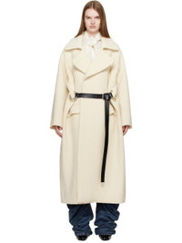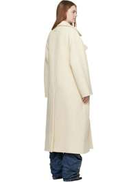 Stretch virgin wool melton coat. · Raw edges throughout · Notched lapel · Double-breasted press-stud closure · O-rings and post-stud strap at front · Flap pockets at front front · Central vent at back hem Supplier color: Ecru Body: 99% virgin wool, 1% elastane. Trim: 100% viscose. Made in Italy 252808F059002