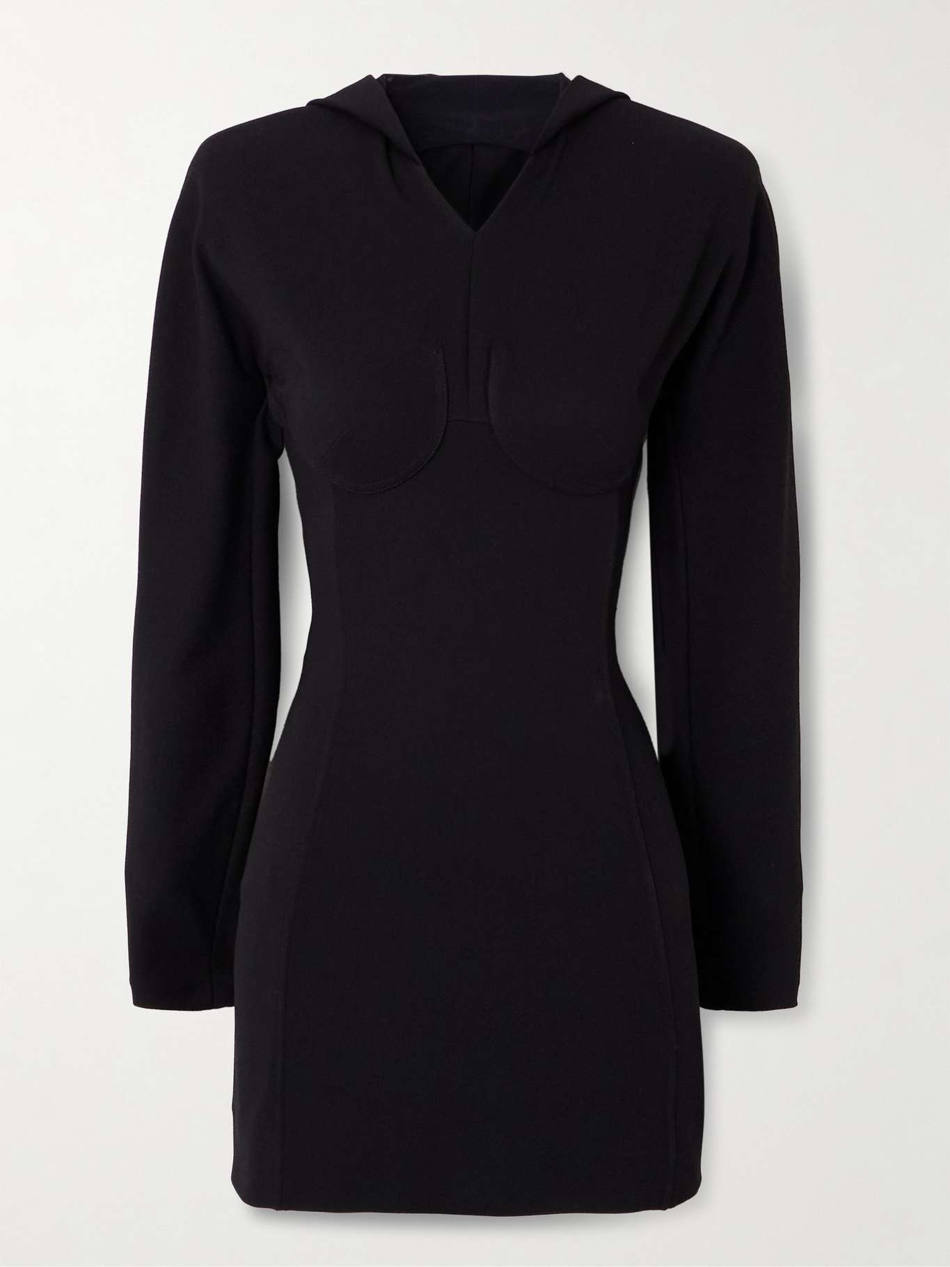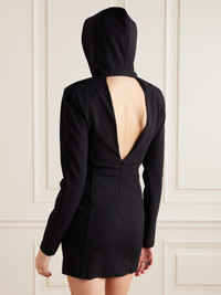 Open-back hooded paneled crepe-jersey mini dress Black