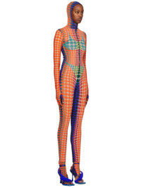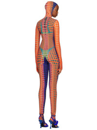Stretch nylon jersey jumpsuit. Graphic pattern printed throughout. · Turtleneck · Zip closure · Locker loop at back collar Supplier color: Purple/Orange/Green 80% polyamide, 20% elastane. Made in Italy 231808F070002