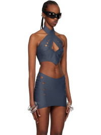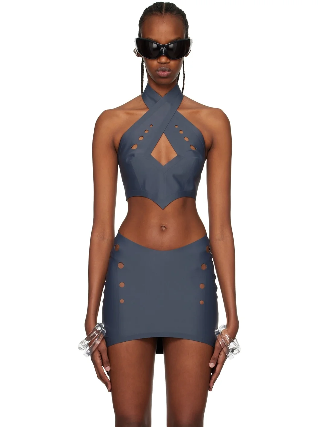 Stretch nylon bonded jersey tank top. · Cutouts at criss-crossing halter strap · Cropped hem · Velcro closure at back Part of the Cyber collection. Supplier color: Dark grey 78% polyamide, 22% elastane. Made in Italy 231808F111006