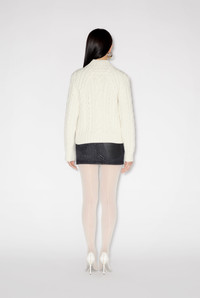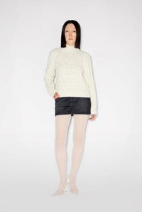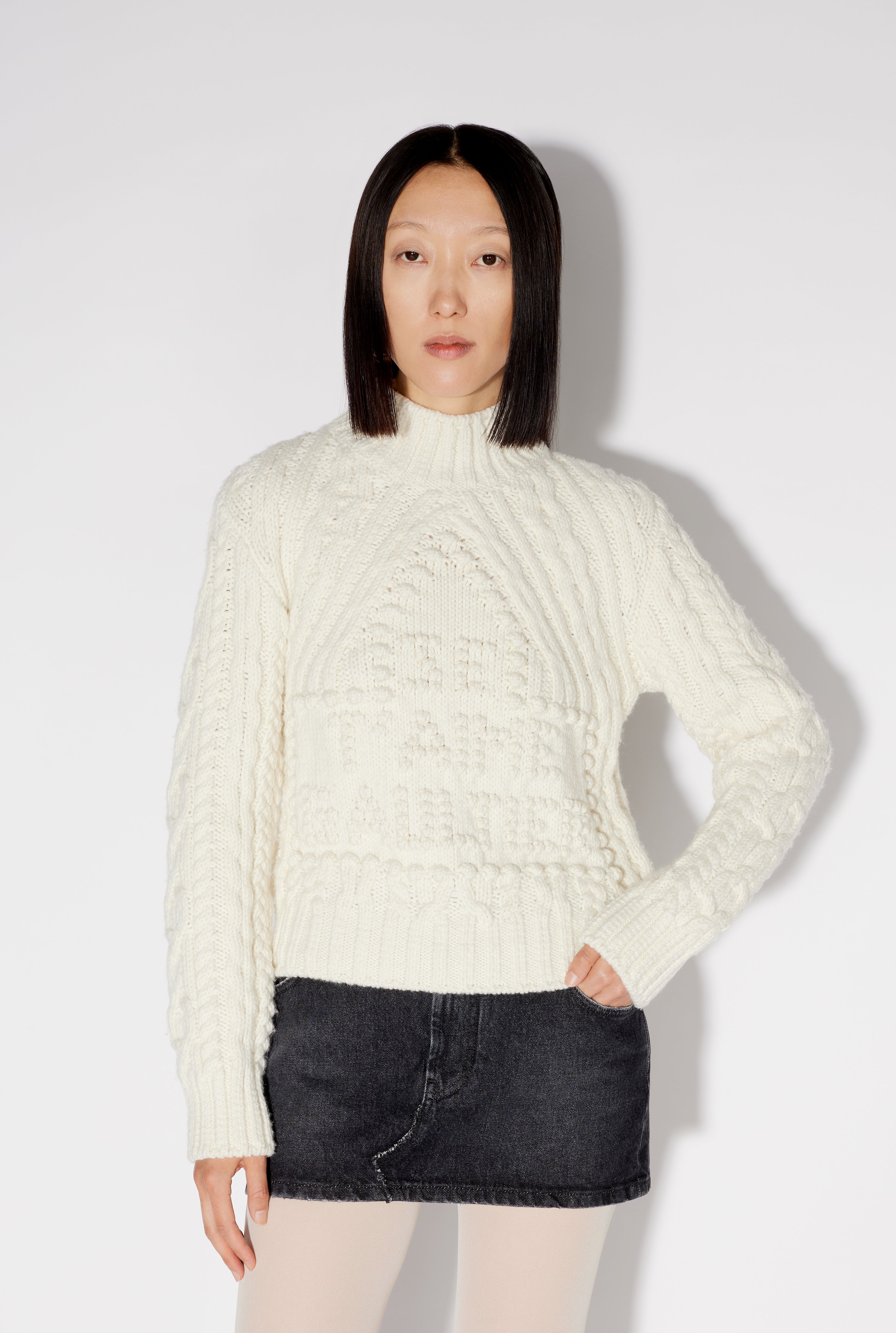 Gaultier TV Collection Aran knit sweater with “Je t’aime” detail. PRODUCT DETAILS - Tight fit - Mock turtleneck - Ribbed finishes - Materials: 50% virgin wool, 50% polyester - Made in Italy