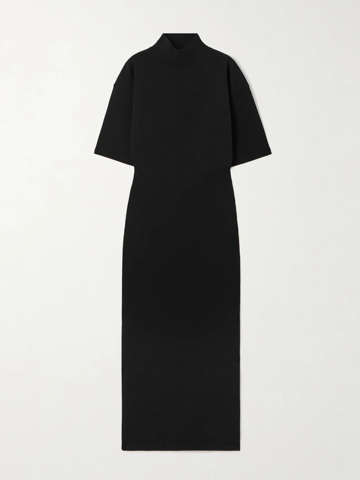Jean Paul Gaultier's dress riffs on T-shirt styles, but the sculptural, boxy sleeves make it feel that much cooler. Made from cotton-blend jersey, it nips in at the waist and is printed with the brand's logo at the back.