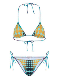 printed tie bikini set Highlights - Blue - Purple - Yellow - Polka dot print - Tie fastening - Triangle top - Be mindful to try on swimwear over your own garments. Imported Composition Polyester 83%, Spandex/Elastane 17% Washing instructions Read Manufacturer Guidelines
