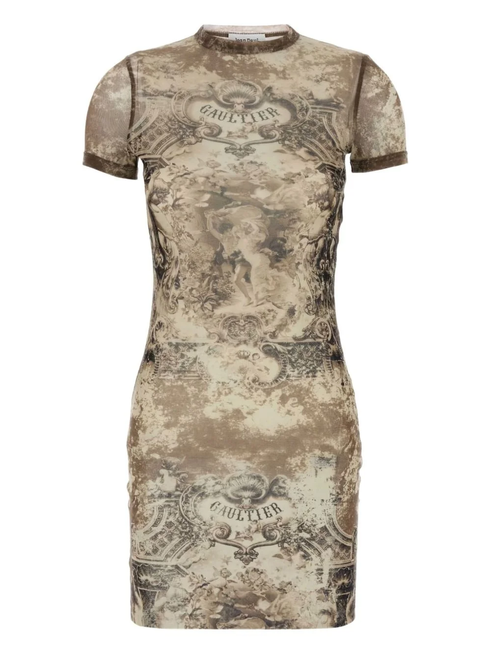 printed mini dress Highlights - Light beige taupe - Short sleeves - Sheer tulle - Mock neck Made in Italy Composition Nylon 100% SIZE & FIT FittingInformation Designed for a close fit throughout Made from a lightweight non-stretch fabric, this piece offers minimal elasticity when worn Washing instructions Read Manufacturer Guidelines