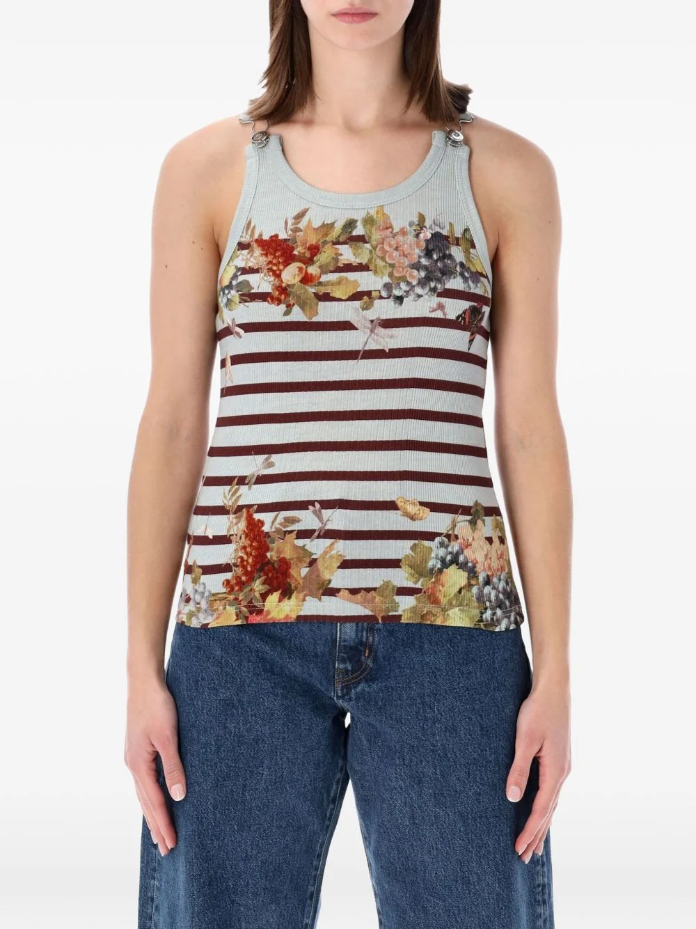 ribbed floral tank top Highlights - Blue - Striped-pattern - Floral print - Ribbed - Metal detail - Round-neck Imported Composition Cotton 100% Washing instructions Read Manufacturer Guidelines