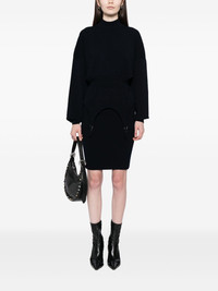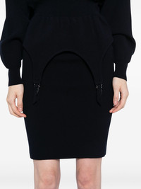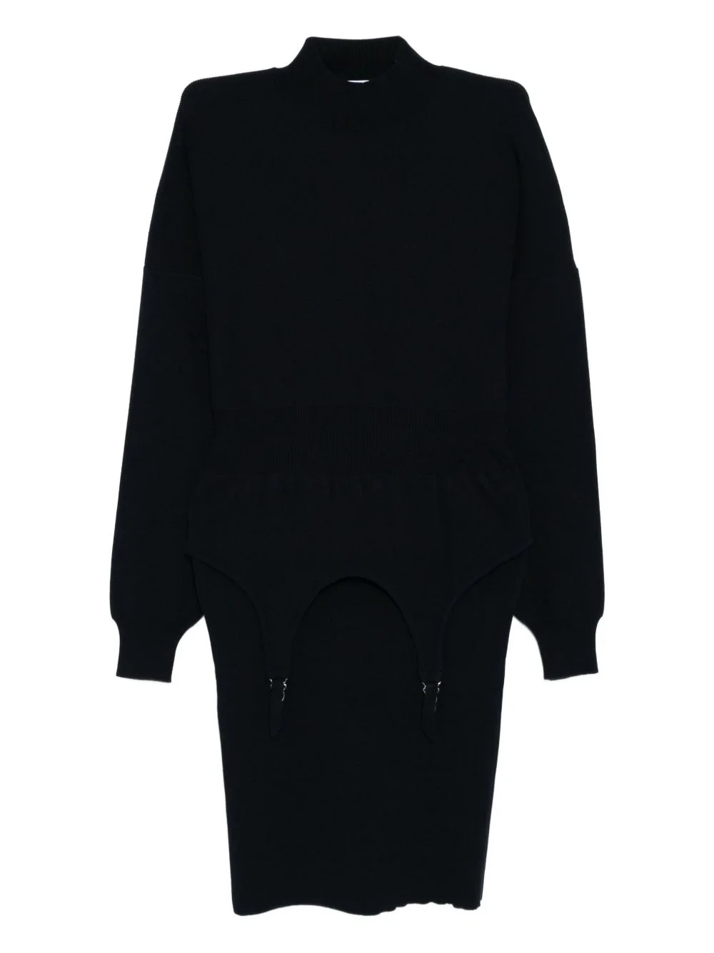 Garter dress Highlights - Navy blue - Long sleeves - Mock neck Made in Italy Composition Viscose 70%, Polyester 30% SIZE & FIT Model measurements Height 5 ft 10 in(1.78 m) Bust/Chest 30.31 in(77 cm) Hips 34.64 in(88 cm) Waist 23.22 in(59 cm) FittingInformation Designed for a loose fit at the chest with a close fit over the waist and hips Made with a midweight knit, this piece offers some stretch Washing instructions Machine Wash