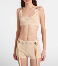 Dubbed fashion's “enfant terrible”, Jean Paul Gaultier hails the renaissance of vintage style codes through pop culture-inspired designs. This bra top has ribbed-knit cotton construction and overalls-style buckles. Product Details - Material: 100% cotton - Care instructions: machine wash at 30 degrees - Made in Bulgaria - Color: beige - Designer color name: Beige - Item color: beige - Hardware color: silver - Item number: P01113328 Size & Fit - True to size - Fitted - Elasticated hem - Stretchy fabric - Cropped - The model seen in the picture is 178cm-5'10" and wearing a size XS