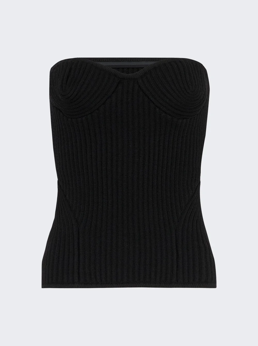 Details - Stretch merino wool corset - Ribbed knit - Fitted, stretchy fabric - Falls to the hip, padded top - Material: 100% Merino Wool Size Information: Vendor Color Code: Brand Style: 25/03-W-PO010-K001-00 Designer/Brand: JEAN PAUL GAULTIER