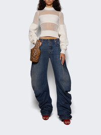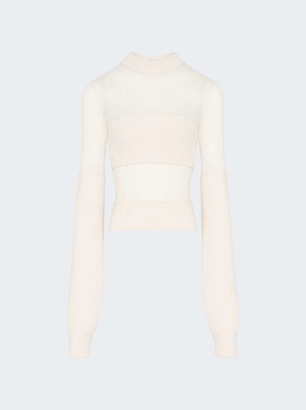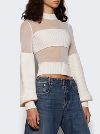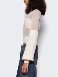 Ribbed Wool And Mesh Long Sleeve Sweater Ecru