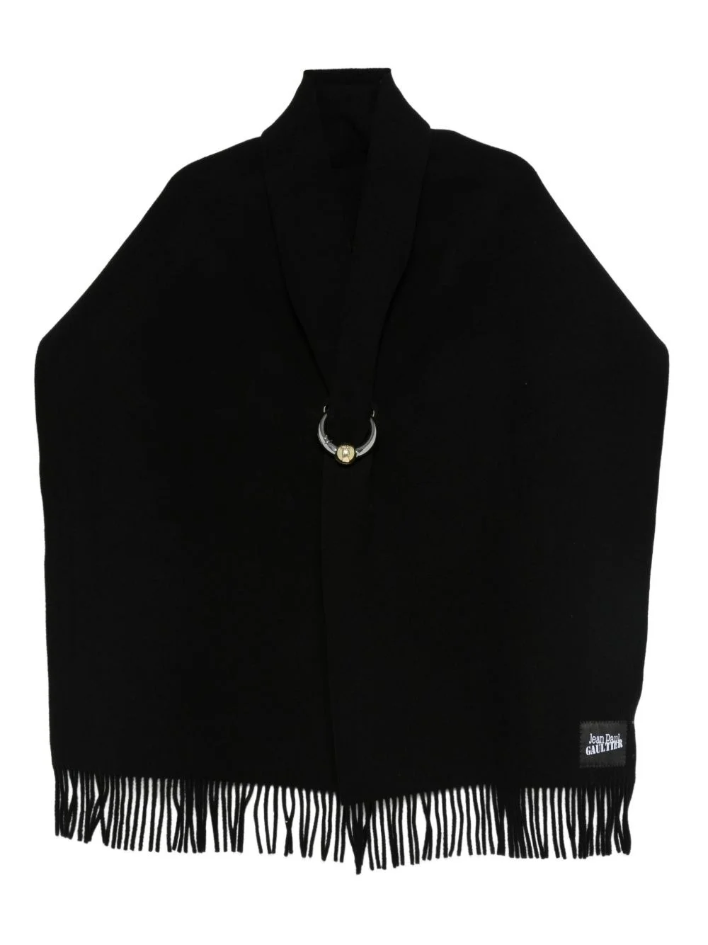 ring-detail fringed scarf Highlights - Black - Wool - Fringed edges - Ring detail Made in Italy Composition Virgin Wool 100% SIZE & FIT Measurement LENGTH 80.31 in(204 cm) WIDTH 19.68 in(50 cm) Washing instructions Dry Clean Only