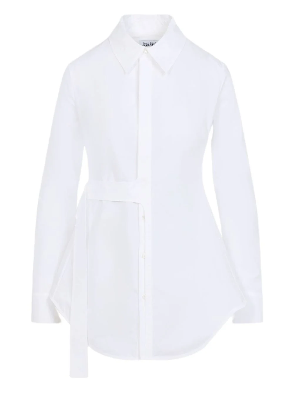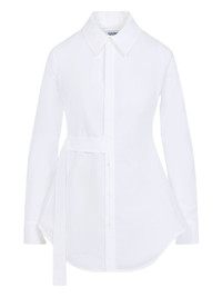 belted shirt Highlights - White - Long sleeves - Button fastening - Collared neckline - Asymmetric hem - Waist tie Imported Composition Cotton 97%, Elastane 3% Washing instructions Read Manufacturer Guidelines