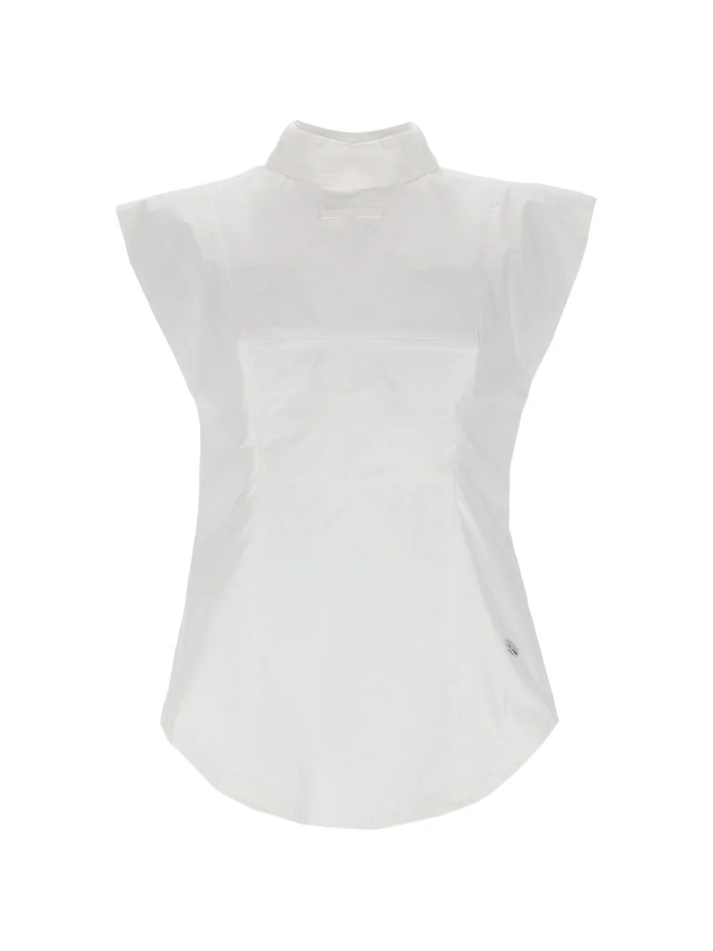 collar top Highlights - White - Stand collar - Sleeveless - Chest pocket Made in Italy Composition Cotton 97%, Spandex/Elastane 3% Washing instructions Read Manufacturer Guidelines