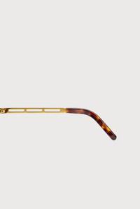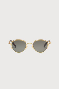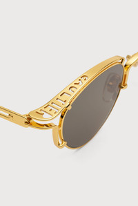 EYEWEAR Collection Sunglasses with oval gold frames, metallic eyebrow-shaped detail and Jean Paul et Gaultier logo. PRODUCT DETAILS - Oval frame - Green lens color - Category 3 UV filters - Anti-glare and scratch-resistant coating - Stainless steel and nickel silver temples - Mazzucchelli acetate temple tips - Material: 75% metal, 10% acetate, 15% glass - Made in France