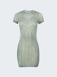 Short Mesh Spiral Dress Ecru And Aqua