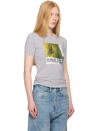 Stretch cotton jersey T-shirt. · Rib-knit crewneck · Graphic and logo printed at front · Locker loop at back collar Available exclusively at SSENSE. Supplier color: Heather grey 96% cotton, 4% elastane. Made in Portugal 252808F110012