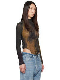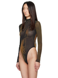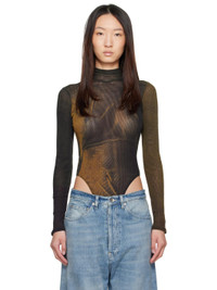 Nylon mesh bodysuit. Graphic printed throughout. · Mock neck · Press-stud fastening at bottom · Loop at back collar · Cutout at back Available exclusively at SSENSE. Supplier color: Seafoam/Mustard 100% nylon. Made in Italy 252808F358005