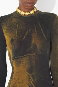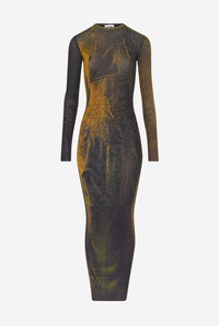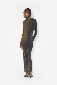 Long green tulle dress with “Acid Water” print. PRODUCT DETAILS - Tight fit - Crew neck - Stretchy material - Long sleeves - Tulle lining - Material: 100% polyamide - Made in Italy - Reference : 25/03-W-DR027-M004P-4812