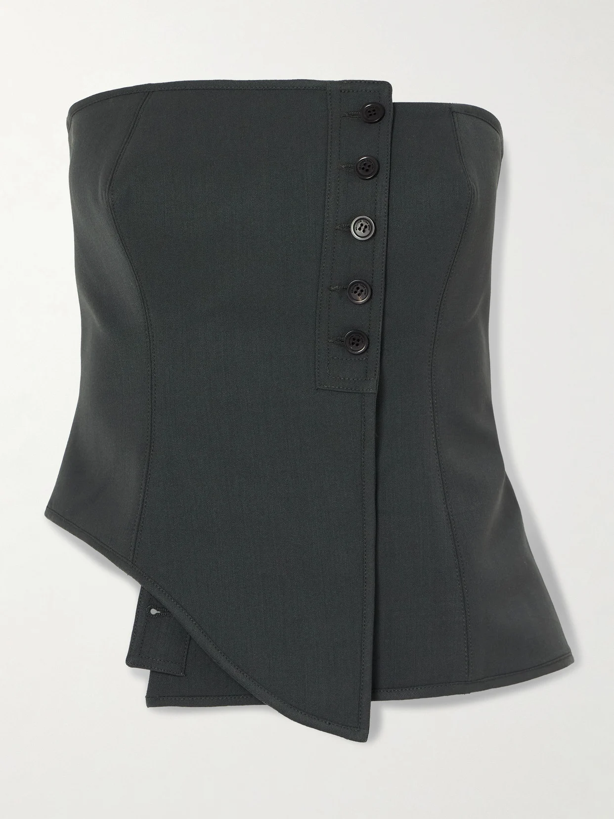 Strapless Asymmetric Wool-blend Twill Bustier Top