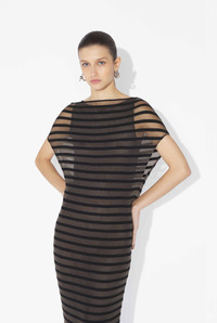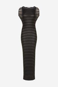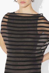 Semi-transparent black knit dress with matte tonal Mariniere stripe detail. PRODUCT DETAILS - Loose fit - Crew neck - Lining under dress - Materials: 70% viscose, 30% polyester - Made in Italy - Reference: 25/34-F-RO400-M088-00