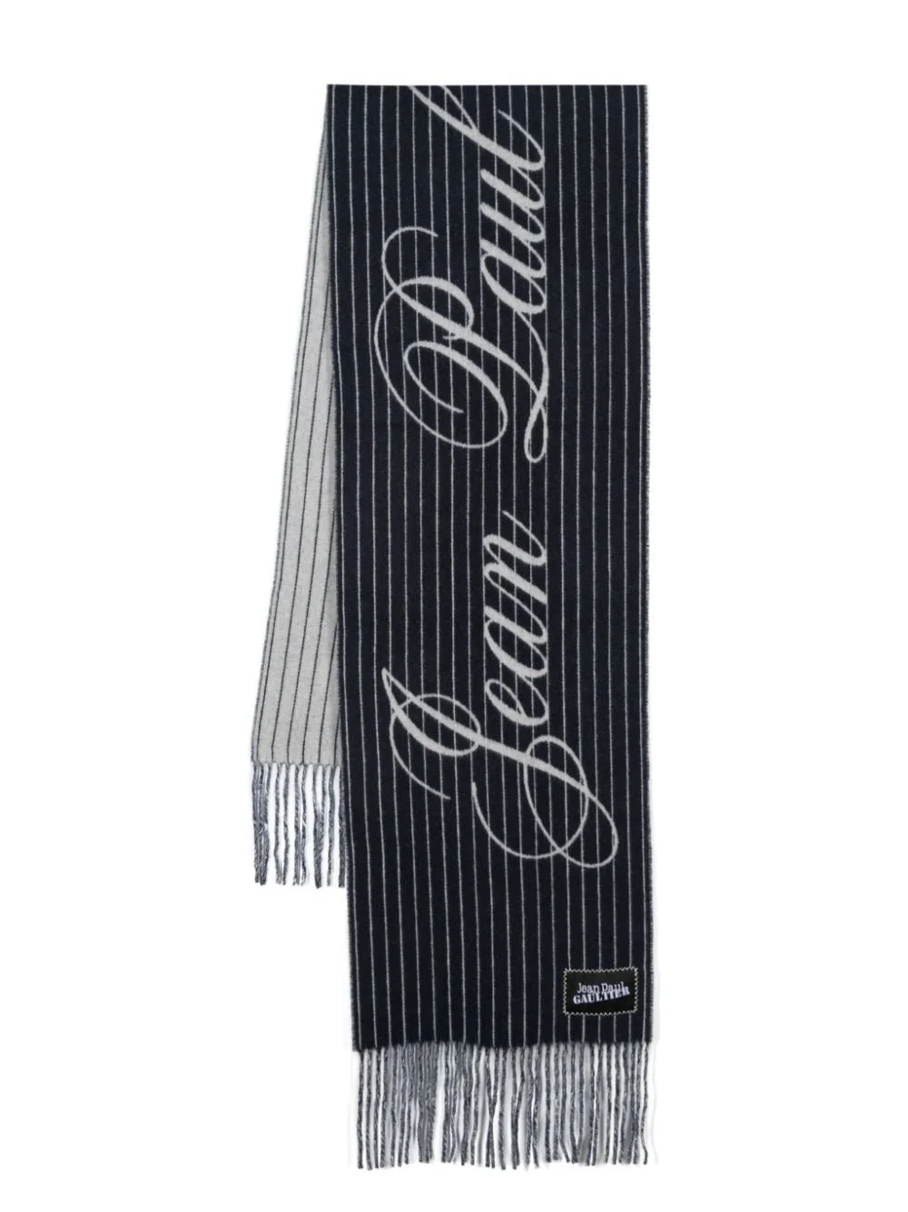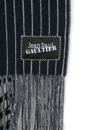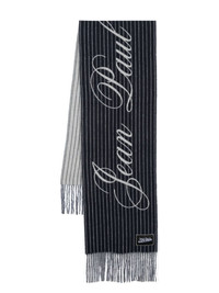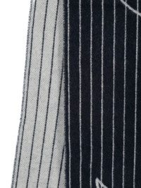 striped scarf Highlights - Navy blue/white - Alpaca wool-blend - Knitted construction - Brushed finish - Horizontal stripe pattern - Intarsia-knit logo - Fringed edge - Wraparound style Made in Italy Composition Alpaca Wool 80%, Polyamide 20% SIZE & FIT Measurement LENGTH 94.48 in(240 cm) WIDTH 14.96 in(38 cm) Washing instructions Dry Clean Only