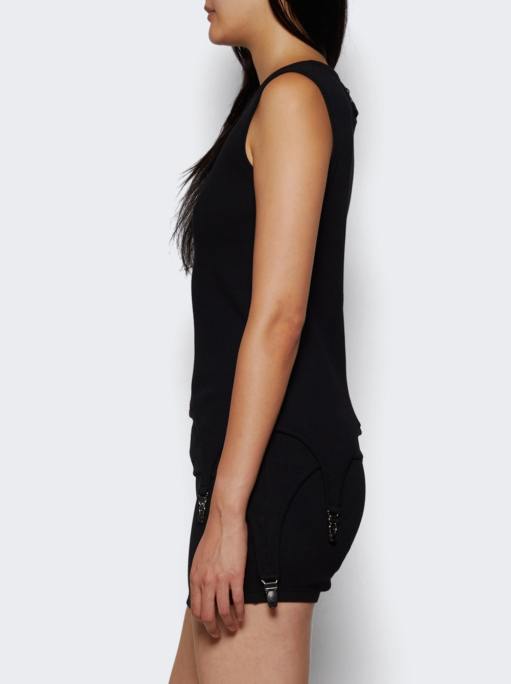 Ribbed Tank Top With Lingerie Garter Black