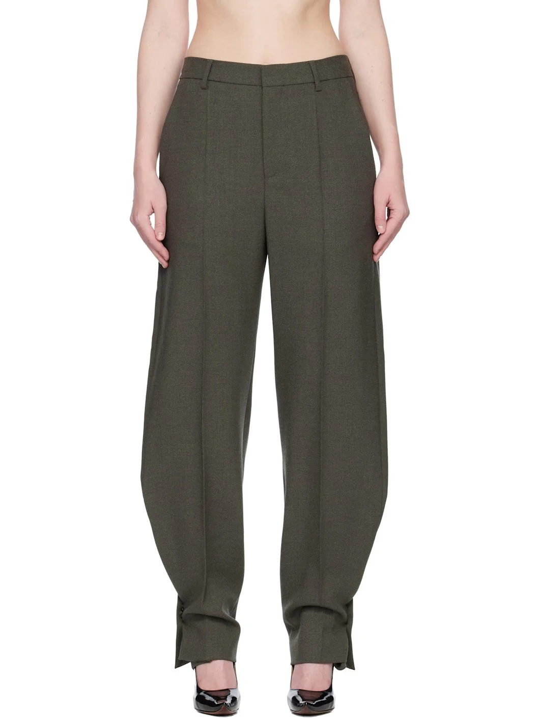 Straight-leg virgin wool-blend canvas trousers. · Belt loops · Three-pocket styling · Zip fly · Creased legs · Adjustable button vent at cuffs · Locker loop at back waist · Logo-engraved hardware Supplier color: Green Body: 88% virgin wool, 12% polyamide. Lining: 100% viscose. Pocket lining: 100% cotton. Made in Bulgaria 252808F087007