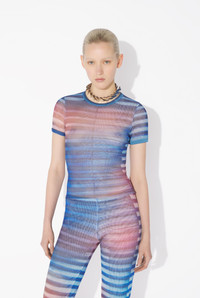 Blue tulle crop top with “Air” print. PRODUCT DETAILS - Tight fit - Crew neck - Stretchy material - Tulle lining - Material: 100% polyamide - Made in Italy - Reference : 25/03-W-TO318-M005P-565034