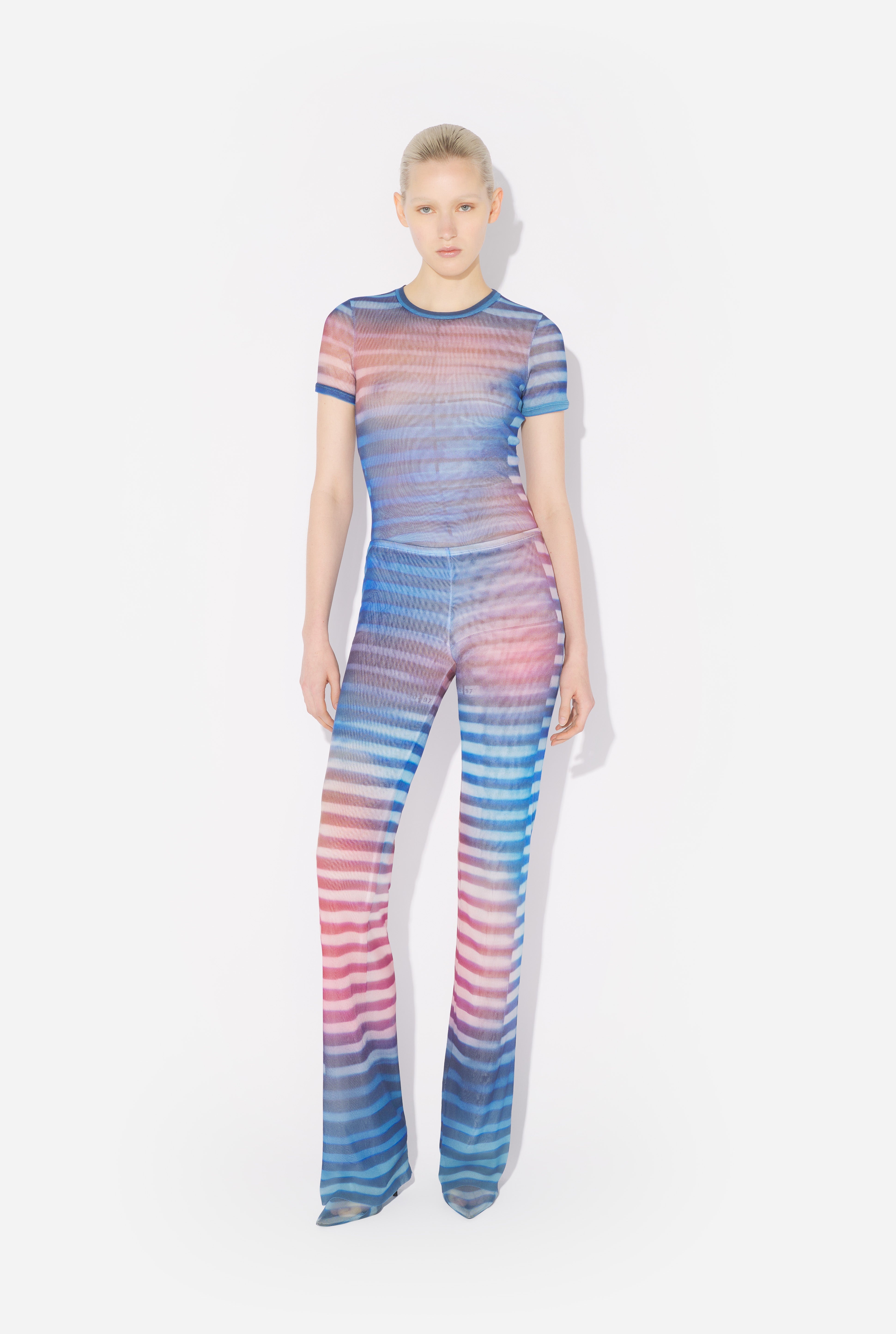 Blue tulle pants with “Air” print. PRODUCT DETAILS - Straight fit - Stretchy material - Elastic waistband - Tulle lining - Material: 100% polyamide - Made in Italy - Reference : 25/03-W-TR017-M005P-565034