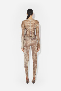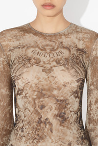 Beige tulle bodysuit with “Medaillon” print. PRODUCT DETAILS - Tight fit - Crew neck - Stretchy material - Tulle lining - Invisible zip fastening in back - Material: 100% polyamide - Made in Italy - Reference : 25/03-W-JS001-M006P-6965