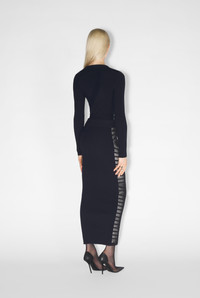 Fashion Fiction Collection Long Marinière skirt in knit and tulle. PRODUCT DETAILS - Slim fit - Elasticized waistband - Wool sleeves and ribbing - Main materials: 70% viscose, 30% polyester - Secondary material: 100% polyamide - Made in Italy