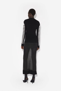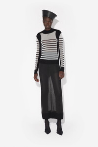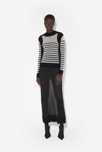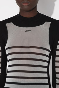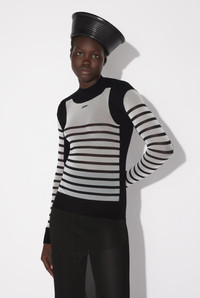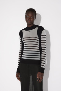 Black knit sweater with black and white Mariniere tulle applique. PRODUCT DETAILS - Tight fit - Crew neck - Main material: 100% polyamide - Secondary materials: 70% viscose, 30% polyester - Made in Italy - Reference: 25/33-F-PL069-T574-0100
