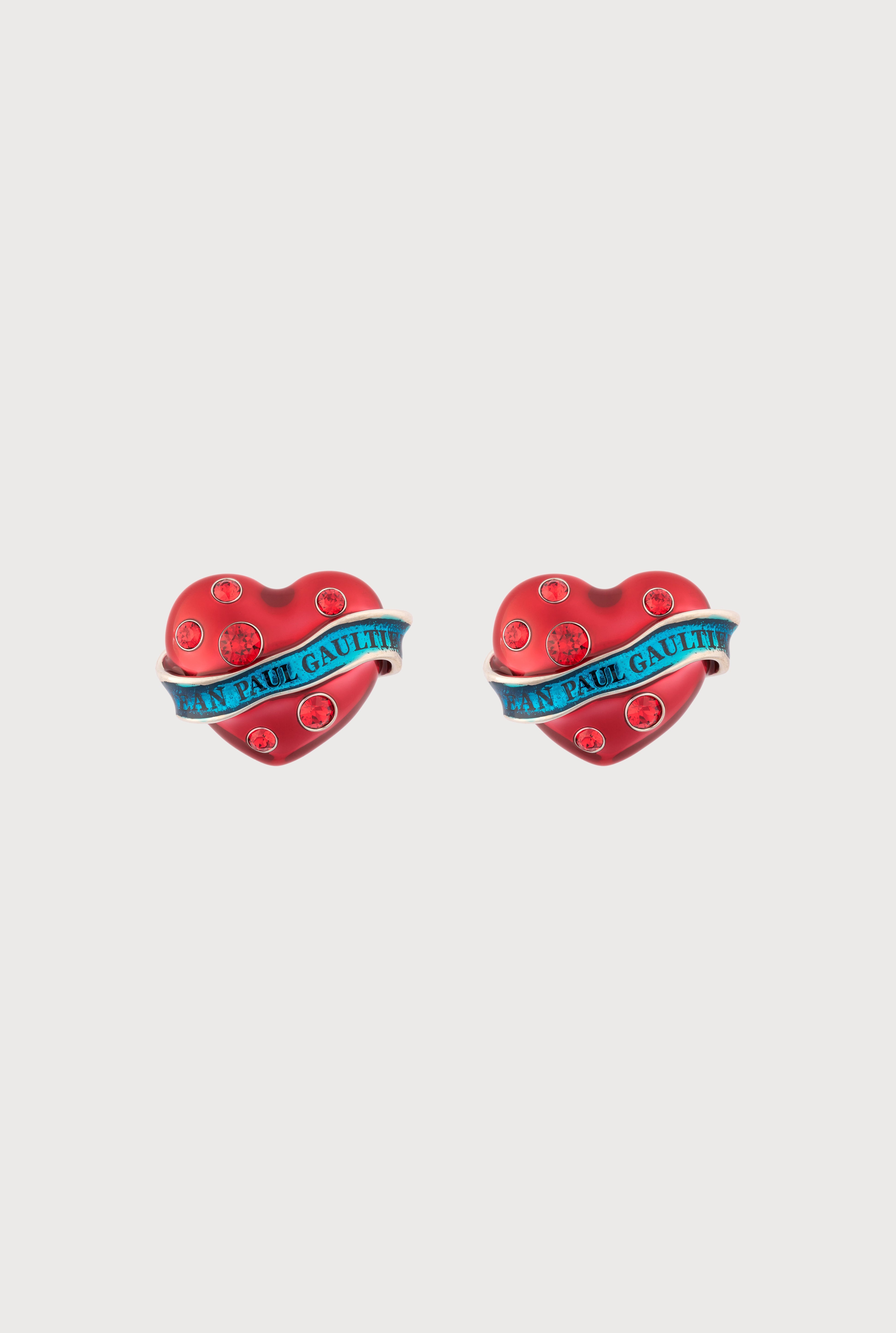 Très Gaultier Collection Heart earrings with Jean Paul Gaultier engraving. PRODUCT DETAILS - Sold as a pair - Material: 100% Brass - Made in Italy