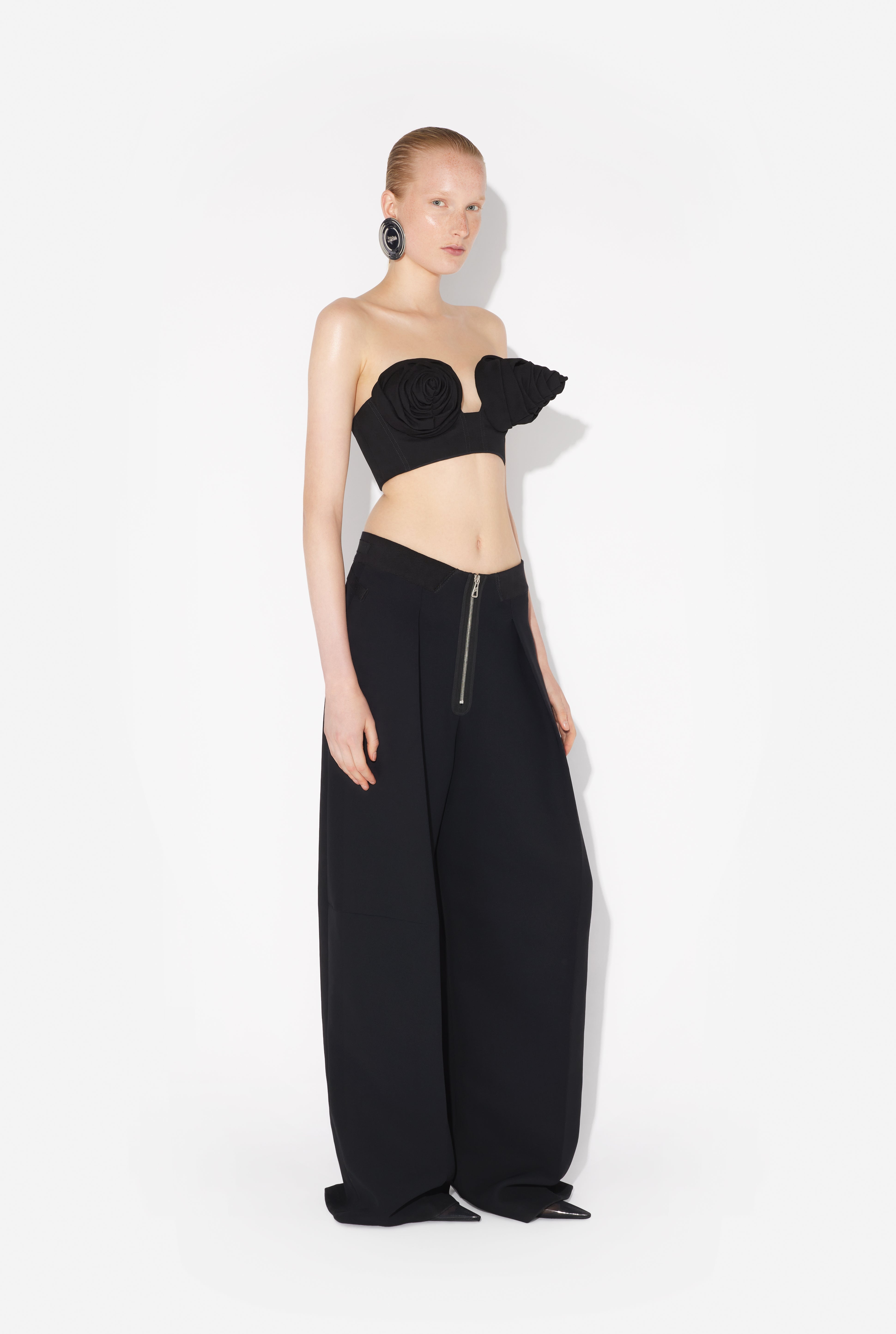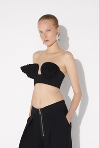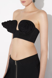 Black crepe crop top with conical bra cup detail. PRODUCT DETAILS - Invisible zip fastening and hook on back - Main material 78% viscose, 16% polyamide, 6% elastane - Lining: 100% cotton - Made in Italy - Reference: 25/33-F-SG045-J081-00