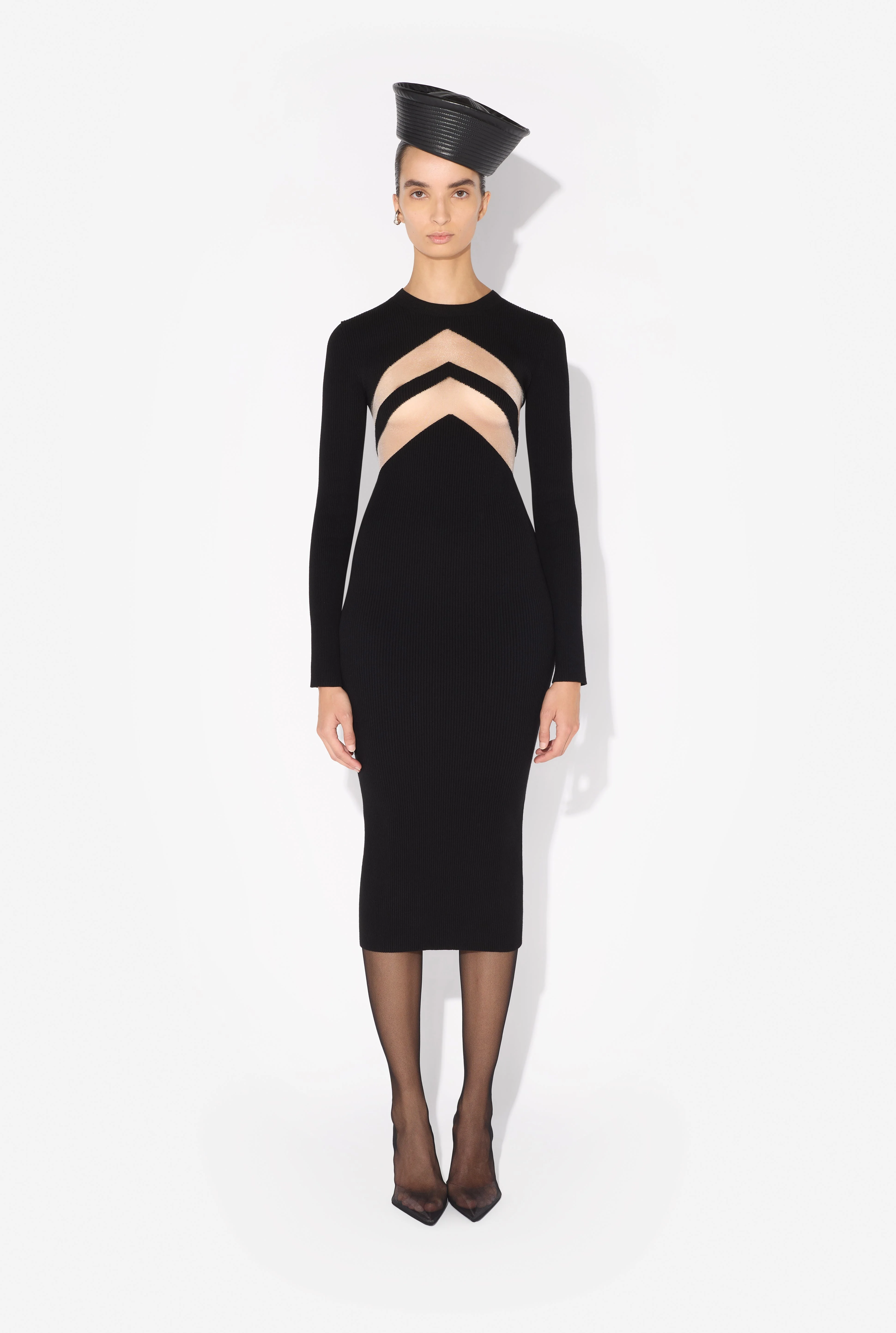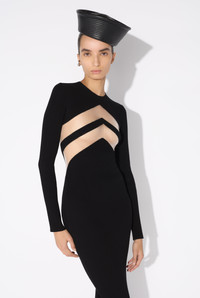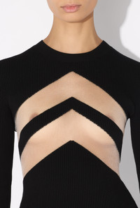 Long black knit dress with transparent chevron pattern. PRODUCT DETAILS - Tight fit - Crew neck - Materials: 70% viscose, 30% polyester - Made in Italy - Reference: 25/33-F-RO379-M085-00