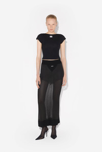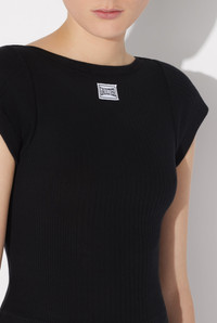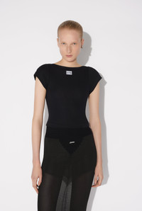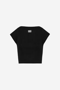 Cropped black cotton T-shirt with Gaultier patch below the neckline. PRODUCT DETAILS - Tight fit - Crew neck - Materials: 100% cotton - Made in Bulgaria - Reference: 25/33-F-TS105P-J054-00