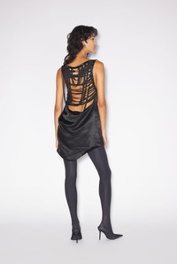 Très Gaultier Collection Short black satin dress with deconstructed lace-up details. PRODUCT DETAILS - Straight fit - Scoop back with corset-style lacing - Material: 100% Viscose - Made in Italy