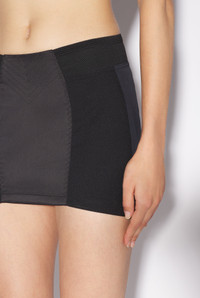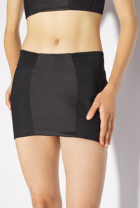 Tattoo Collection Black satin mini skirt with lingerie-inspired topstitched details and lace-up back. PRODUCT DETAILS - Lace-up back - Elastic ribbing - Main materials: 97% polyester, 3% elastane - Secondary materials: 69% polyamide, 31% elastane - Made in England