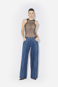 Black tulle bodysuit with “Spirale” print. PRODUCT DETAILS - Tight fit - Crew neck - Stretchy material - Tulle lining - Material: 100% polyamide - Made in Italy - Reference: 25/34-F-BD068-T587-000203