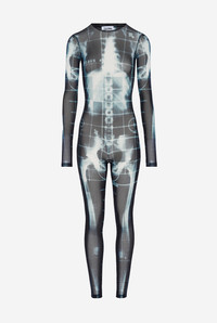 Long-sleeved black tulle jumpsuit with “Squeletor” print. PRODUCT DETAILS - Tight fit - Crew neck - Stretchy material - Invisible zip fastening on back - Materials: 100% polyamide - Made in Italy - Reference : 25/33-F-CB023-T580-005956