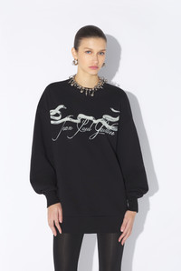 Black jersey sweatshirt with “Tattoo Ruban” print and Jean Paul Gaultier logo detail. PRODUCT DETAILS - Oversized fit - Crew neck - Material: 100% organic cotton - Made in Portugal - Reference: 25/34-F-SW052I-J091-0005