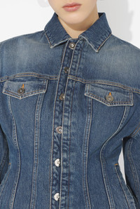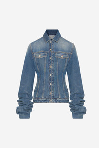 Blue denim jacket with oversized sleeve detail and Jean Paul Gaultier label on the side. PRODUCT DETAILS - Semi-slim fit - Four pockets - Button fastening - Engraved Jean Paul Gaultier buttons - Material: 100% cotton - Made in Italy - Reference : 25/03-W-JA003-D024-57