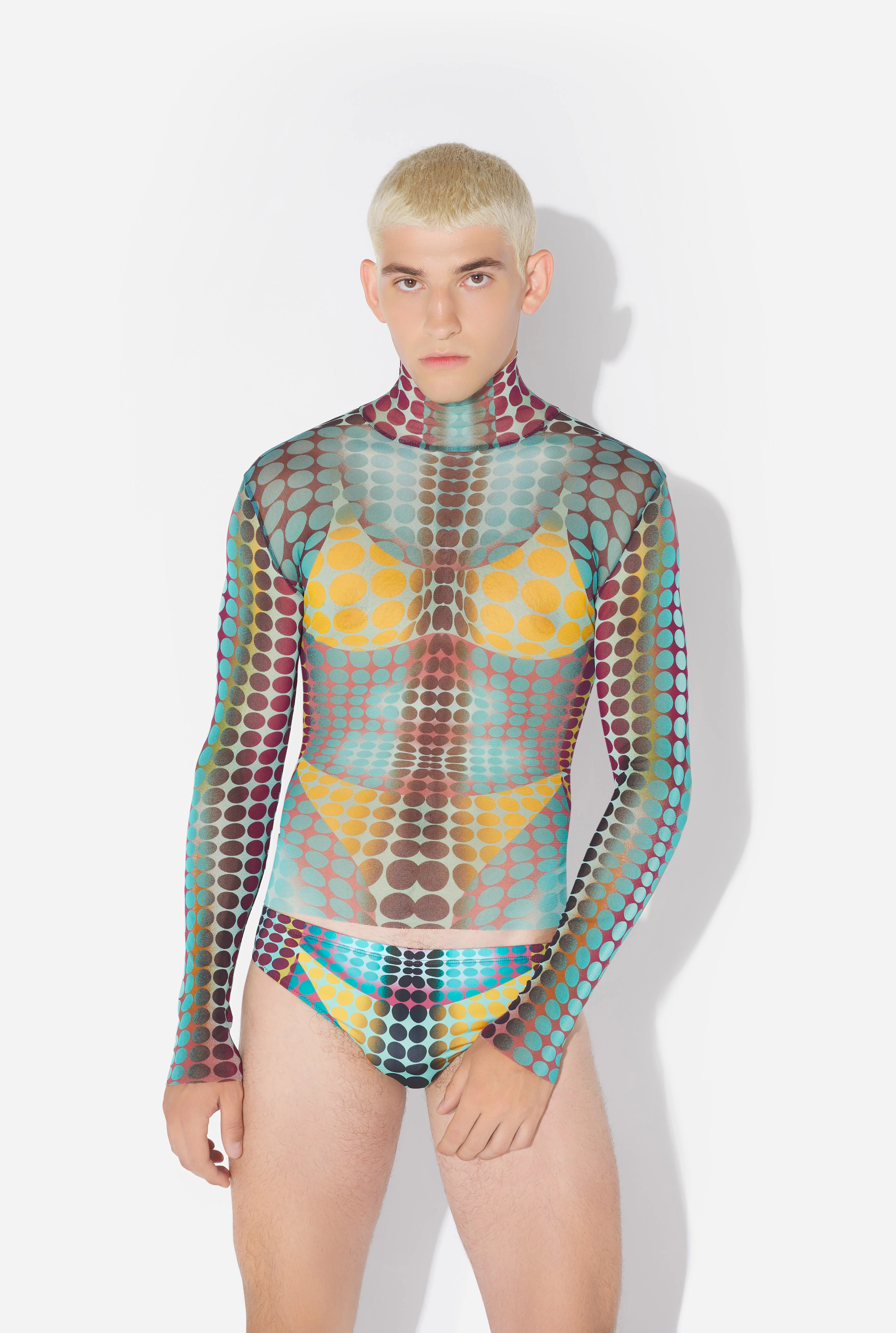 Long-sleeved tulle top with a dots print. PRODUCT DETAILS - Stretchy fit - Turtleneck - Material : 100% polyamide - Made in Italy - Reference: 26/01-W-TO445-M018P-502710