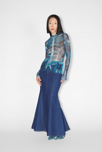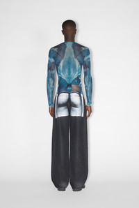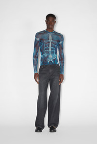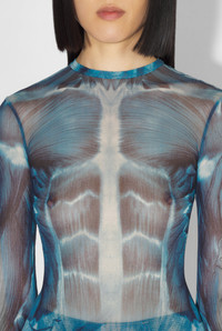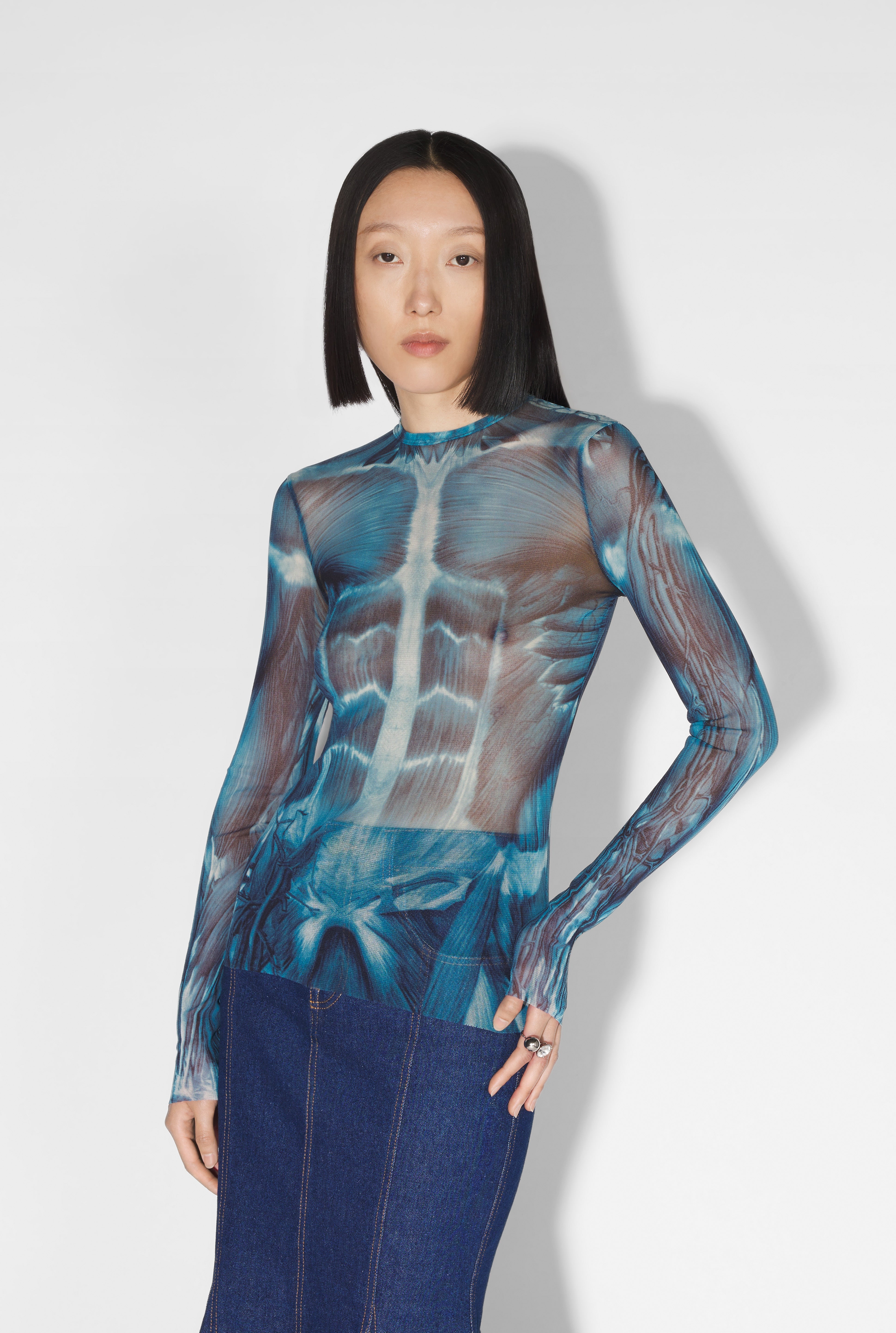Fashion Fiction Collection Long-sleeved top in blue tulle with Écorché print. PRODUCT DETAILS - Tight fit - Crew neck - Stretchy material - Material: 100% polyamide - Made in Italy