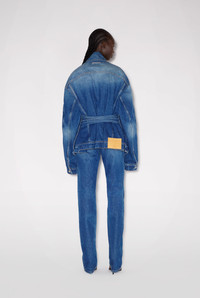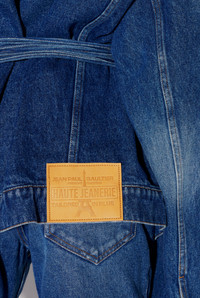 Gaultier TV Collection Blue denim jacket with tone-on-tone lace-up in back and leather Haute Jeanerie label. PRODUCT DETAILS - Straight fit - One flap pocket - Two raglan pockets - Engraved Jean Paul Gaultier metallic button fastening - Material: 100% cotton - Made in Italy